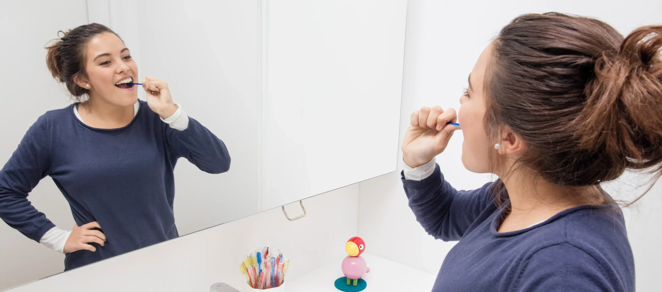 Putzen und benutzen Sie Zahnseide wie gewohnt – schenken Sie nur den hinteren Zähnen ein wenig zusätzliche Aufmerksamkeit.